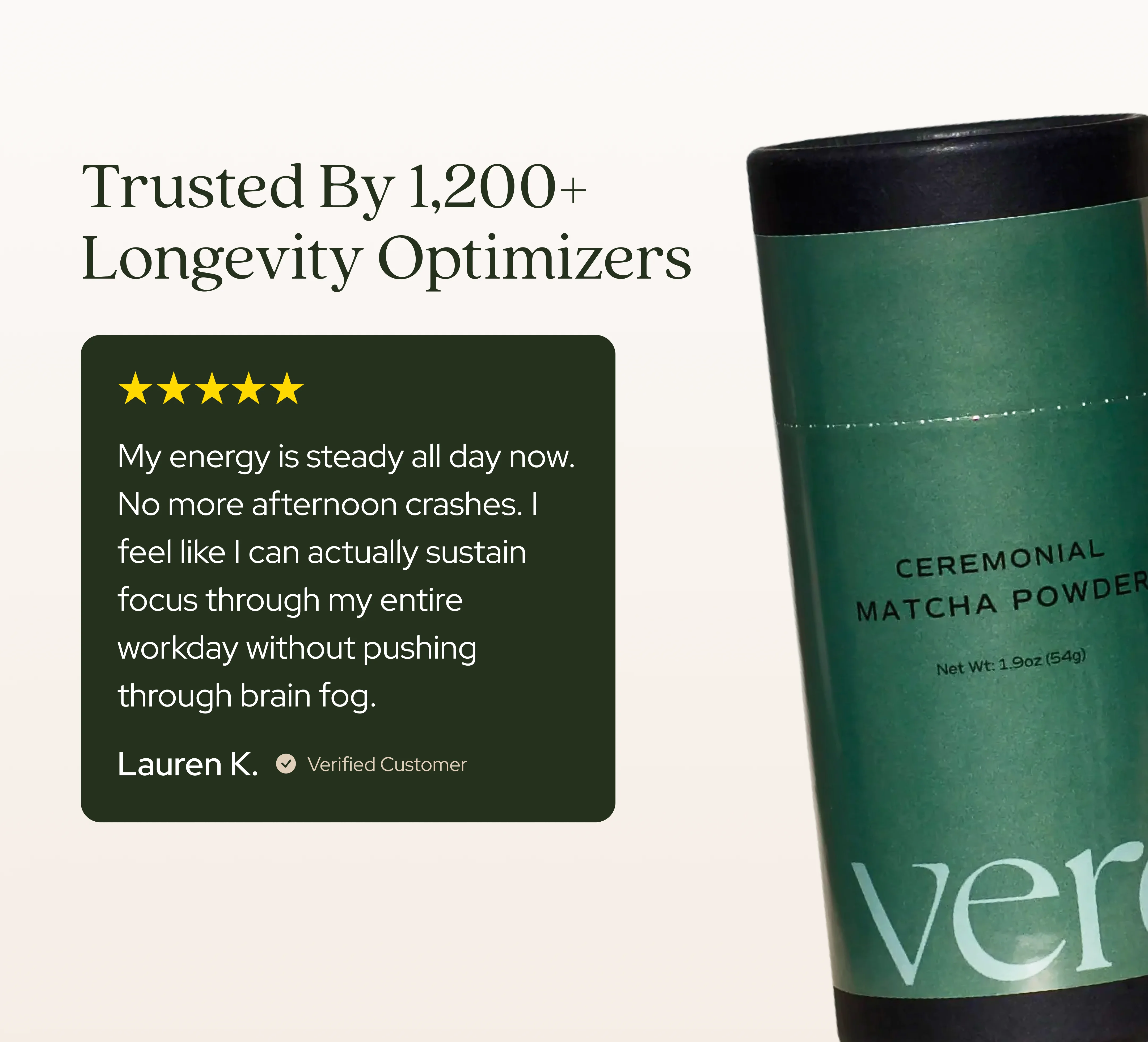 Yes. Veré Matcha is designed to layer into longevity stacks, including NAD+ boosters, adaptogens, and nootropics. The caffeine content is moderate (~70mg per serving), so just adjust your coffee or other caffeine sources accordingly.